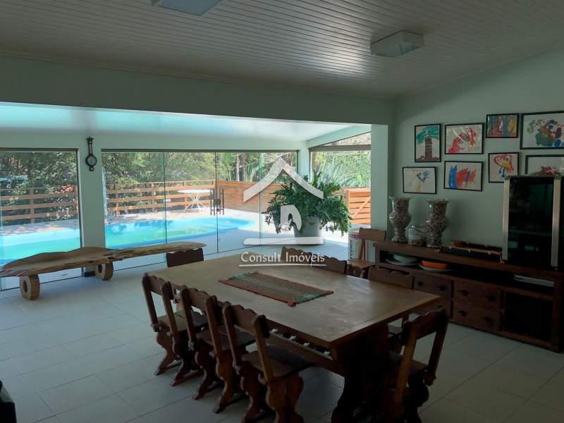 Sítio todo arborizado, ajardinado com terreno de 1.950m². Casa principal com 2 suítes com armários planejados (sendo 1 com sauna), sala de jantar, sala de estar com lareira, cozinhas com armários planejados, lavanderia, despensa e banheiro social. Casa de caseiro com 2 quartos, cozinha e banheiro. Casa de hóspede com 1 suíte, cozinha e banheiro. Área de serviço, garagem coberta para 1 carro e descoberta para 4 carros. Área externa com piscina.