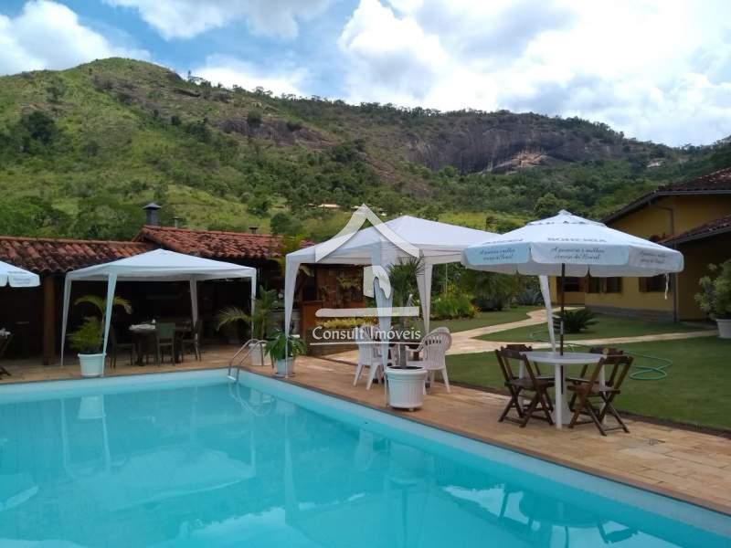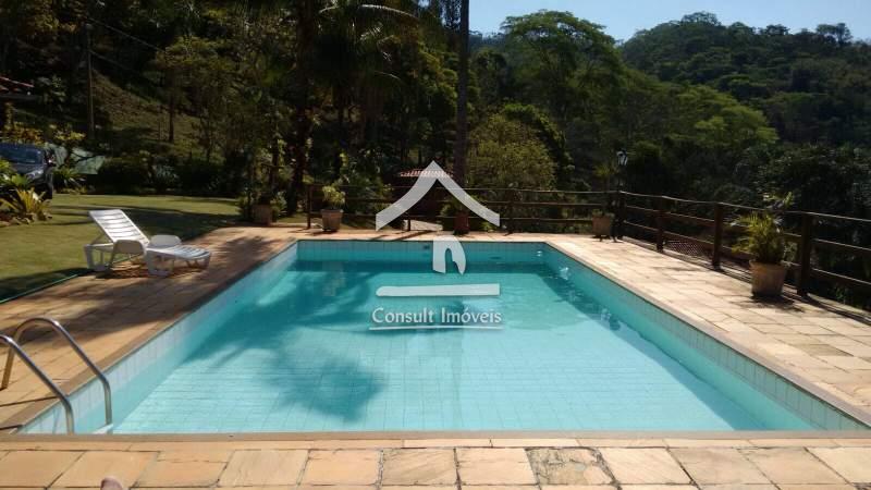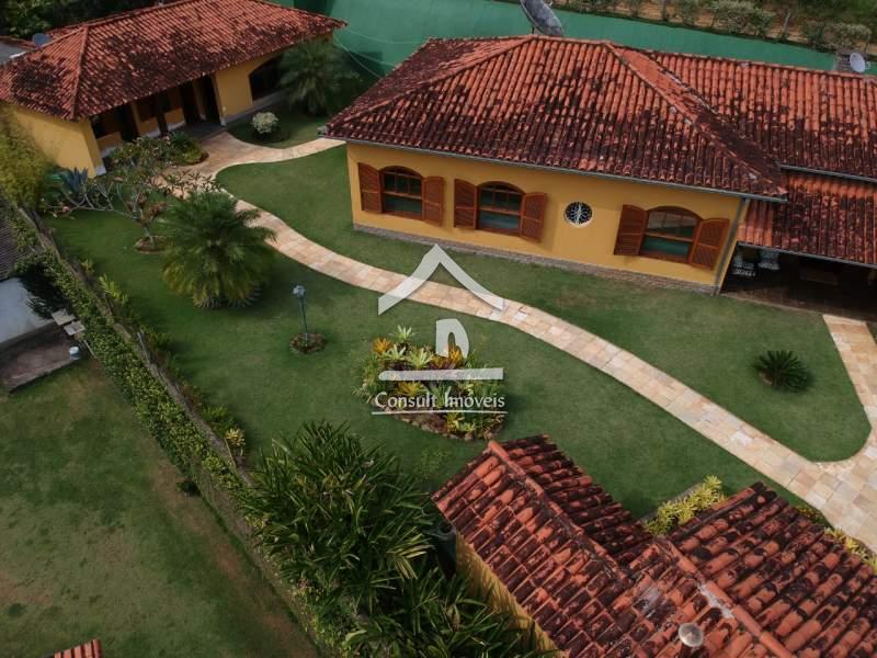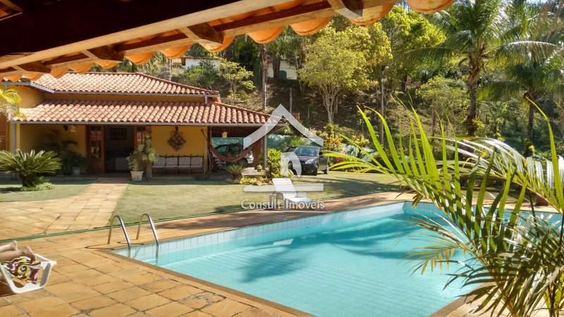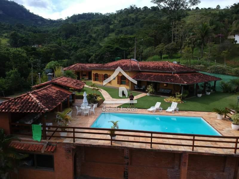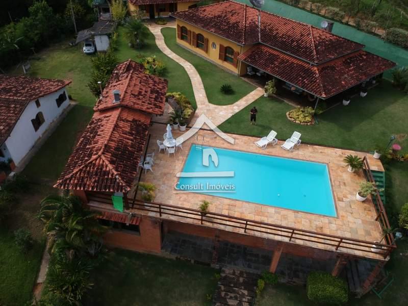 Sítio ajardinado, arborizado, casa principal com 3 quartos (sendo 1 suíte(, salão com lareira, sala de jantar, área externa com 2 suítes. Área de lazer com salão de jogos, piscina, churrasqueira, fogão a lenha, parquinho para crianças.