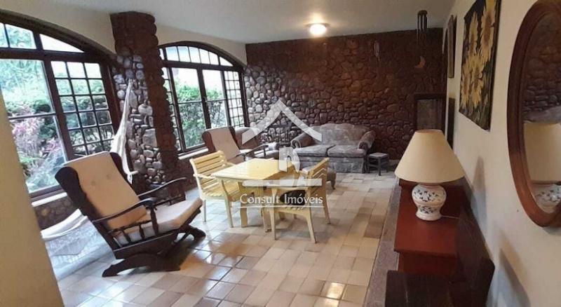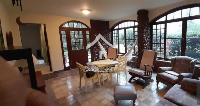 Casa dentro de condomínio em meio ao verde com 600m² de terreno e 163m² de área construída! 4 quartos (1 suíte), sala de estar/ jantar com lareira, escritório, lavabo e varanda fechada. Cozinha com armários planejados, lavanderia e banheiro de empregada. A área de lazer do imóvel com bom padrão de acabamento contém: Churrasqueira, gramado, deck com vista para o riacho e 2 vagas de garagem descoberta! Área de lazer do condomínio: Campo de futebol, churrasqueira, piscina e quadra poliesportiva.