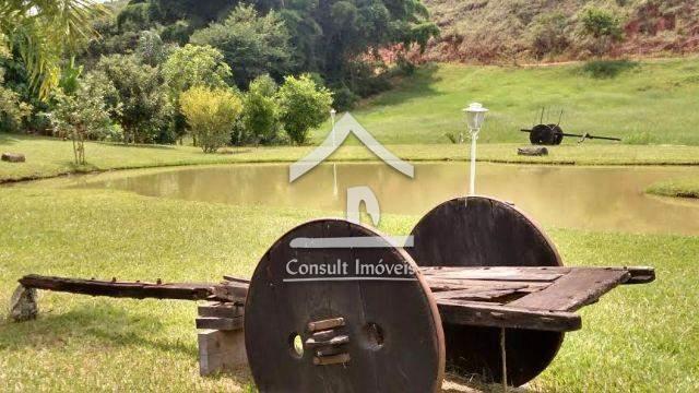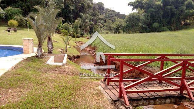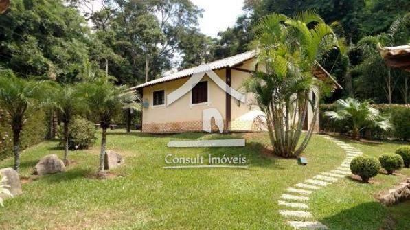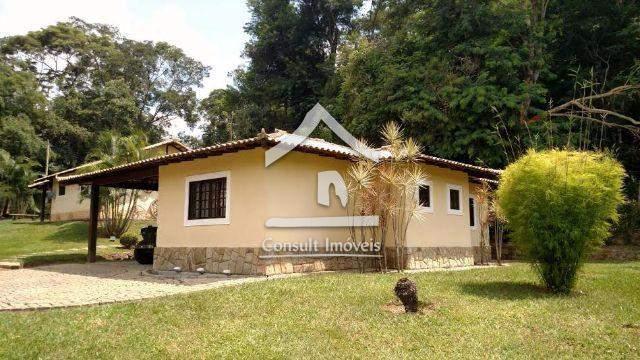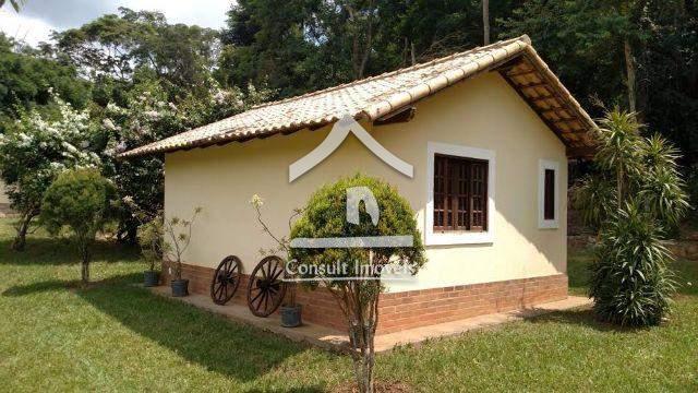 Propriedade com 10.000m² planos, composta de casa principal com sala, varanda, 2 quartos sendo 1 suíte, banheiro social, cozinha, área de serviço e suíte externa.