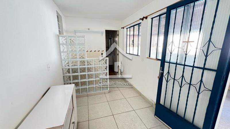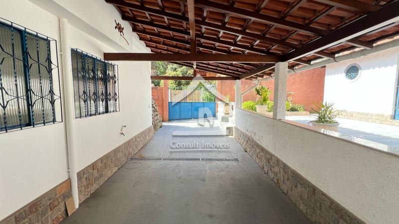 A casa principal possui 131m² e pode ser dividida em duas moradias com entradas independentes pois dispõe de duas salas, duas cozinhas, área de serviço, dois banheiros e cinco quartos.