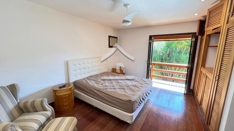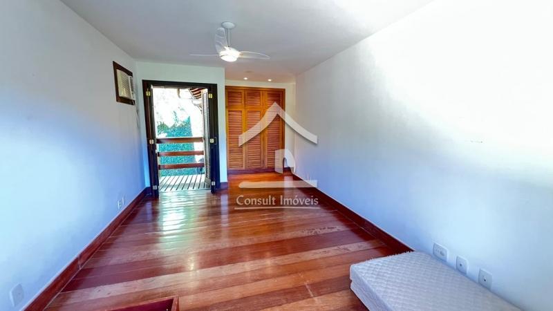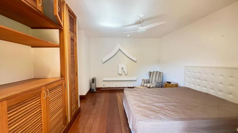 No pavimento térreo: São três suítes (duas com ar-condicionado) e acesso ao jardim, ambas com armários sob medida e ventiladores de teto.