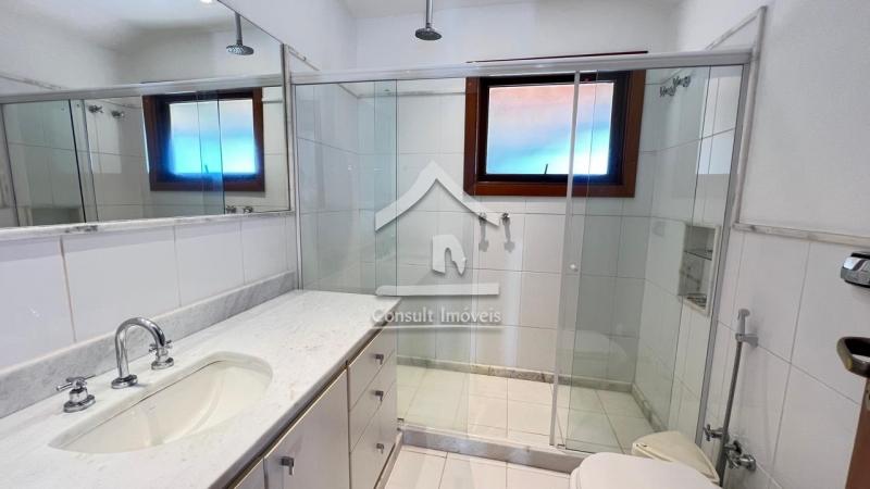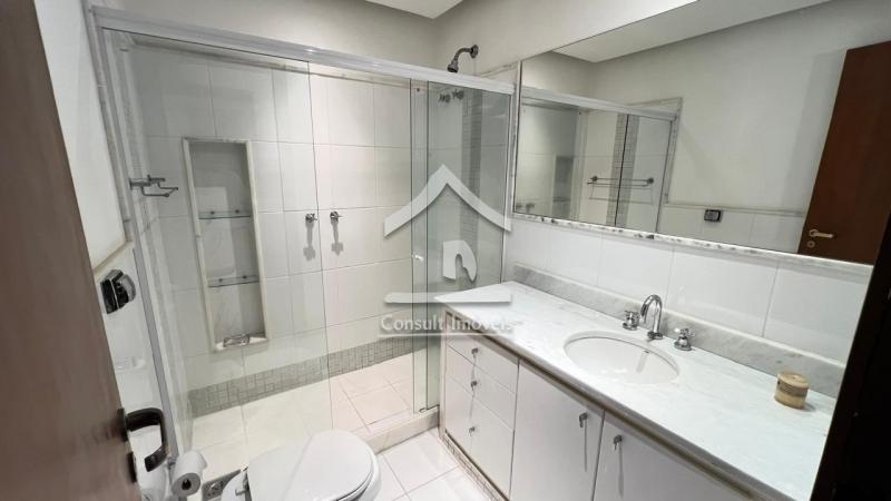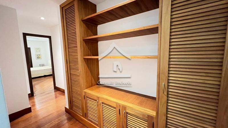 No segundo pavimento: Conta com três suítes (todas com acesso a sacada e ar-condicionado), ambas com armários sob medida e ventiladores de teto, rouparia, pia de apoio.
