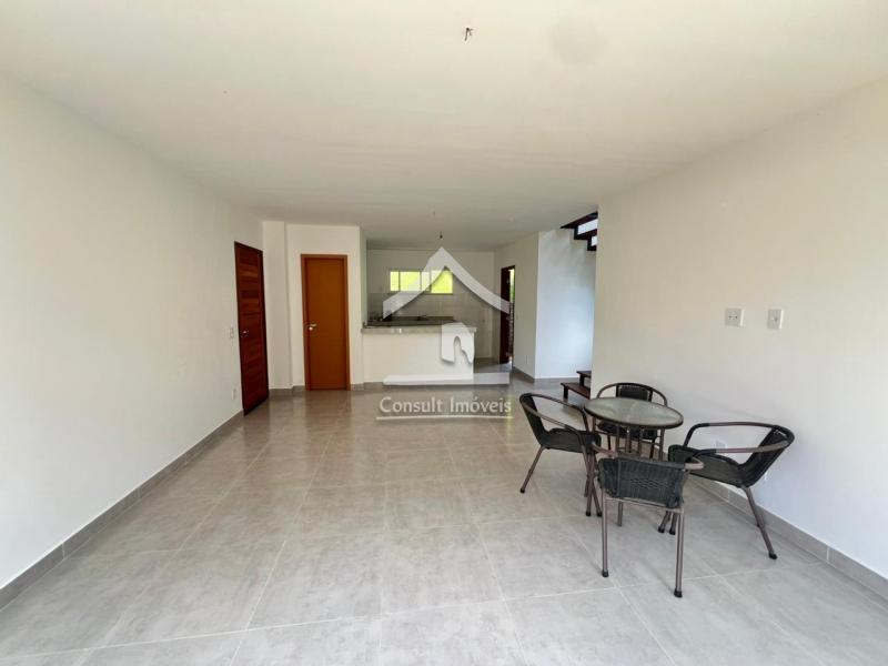 A área social conta com sala ampla e iluminada, com portas de vidro que se conectam à varanda e ao verde ao redor, além de cozinha americana planejada, prática e funcional. No andar superior, as suítes garantem privacidade e bem-estar.